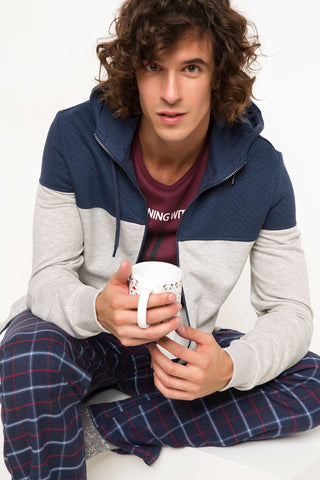 مقاسات العارض: الطول: 1,89 الصدر: 97 الوسط: 78 الخصر: 94 مقاس العينة: L كارديجان رجالي كم طويل قطن 65% بوليستر 35% قصة ضيقة بقبعة جاكيت صوف رمادي بقبعة