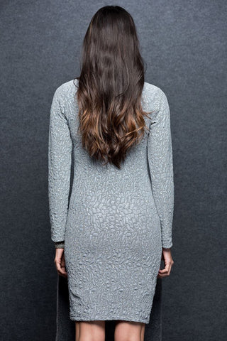 قماش مطاطي مريح فتحة صدر v عميقة اكمام طويلة و تصميم فستان قصير متداخل بخيط ذهبي صناعة تركية