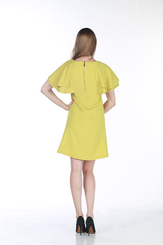 نسيج بوليستر ناعم ياقة دائرية و اكمام بتصميم فراشة سحاب خلفي للاغلاق يأتي مع قلادة ذهبية على شكل مظله صناعة تركية