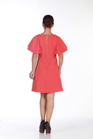 نسيج بوليستر ناعم ياقة دائرية و اكمام بتصميم فراشة سحاب خلفي للاغلاق يأتي مع قلادة ذهبية على شكل مظله صناعة تركية