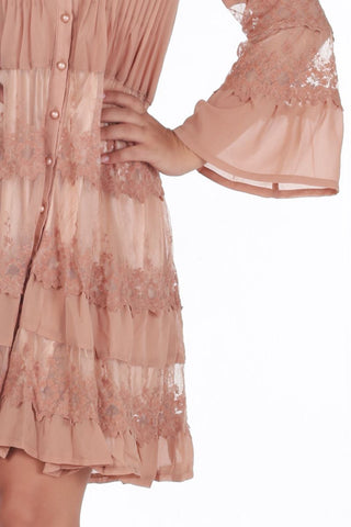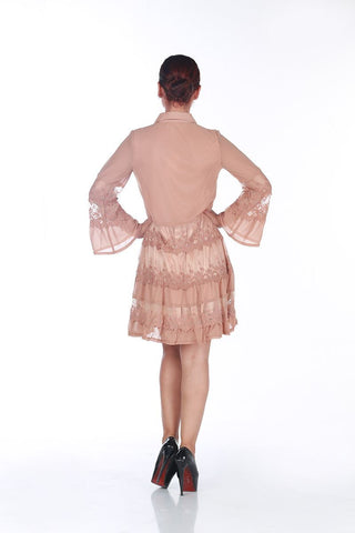 نسيج شيفون خفيف مبطن بقماش ستان حريري ياقة كلاسيكية و اكمام طويلة ازرار امامية للاغلاق قصة واسعة مريحة تصميم بتنورة دانتيل صناعة تركية